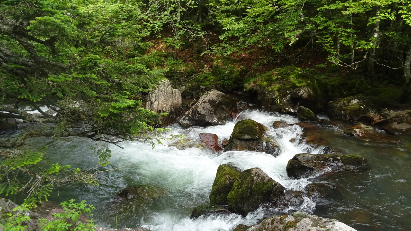 La première montée se fait sur une route forestière, avec déjà quelques torrents dont le gave de Bious, avant d'arriver au pont et au plateau de Bious.